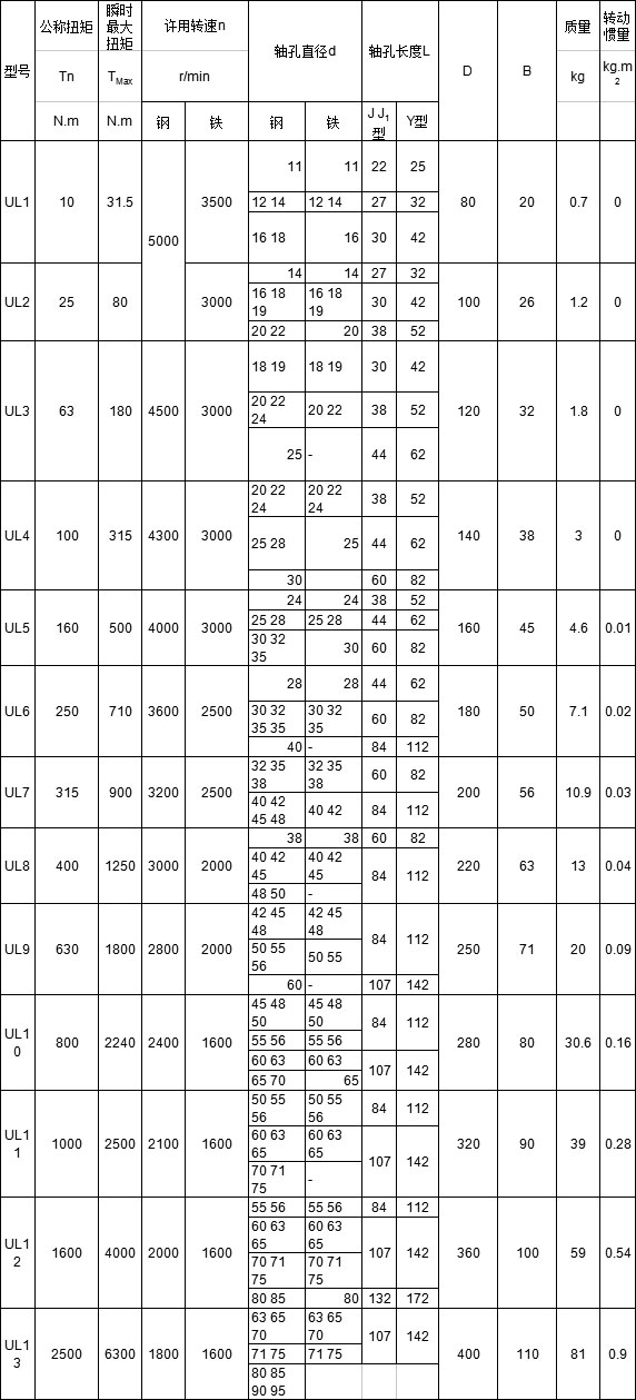 UL型輪胎式聯軸器的基本參數和主要尺寸:(GB/T 5844-86) mm