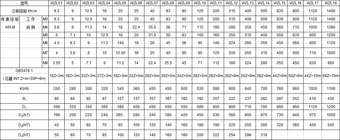 WZL內花鍵卷筒聯軸器主要參數及尺寸: mm